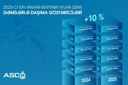 banner / redaktor7 okt 2025, 14:37ASCO gəmiləri ilə yanvar-sentyabrda yükdaşımalarda 10% artım qeydə alınıb