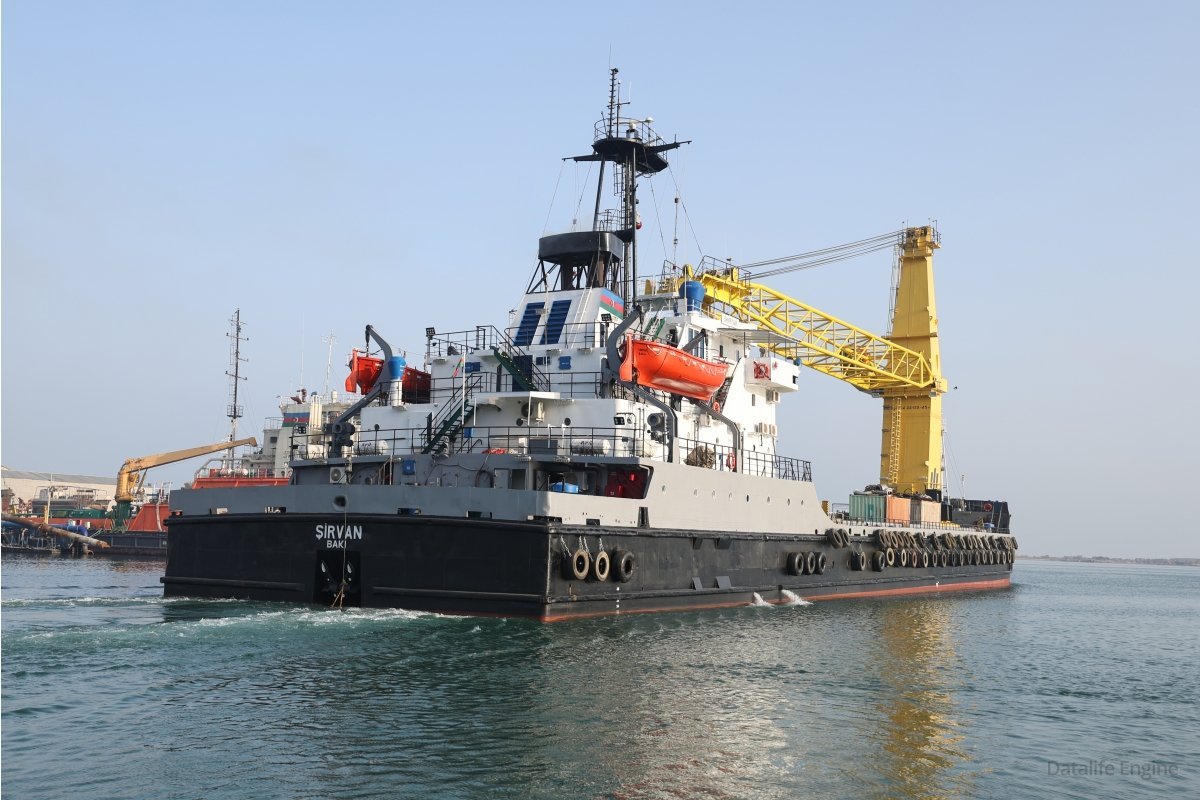 Məlumat üçün bildiririk ki, “Şirvan” kran gəmisinin uzunluğu 98,5, eni 17 metrdir. Gəmi 2×2400 at gücünə malik baş mühərriklərlə təchiz olunub.